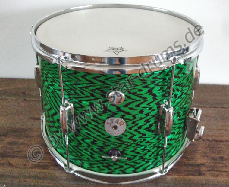 Star ’Parade’ Marching Drum from the early 70’s, in Green Agate Pearl, 14” x 10” (Theo, Deurne, The Netherlands) Round/ silver Star badge Remarks: A very rare deep marching snare drum in gorgeous original condition (including drum heads and tuning key)